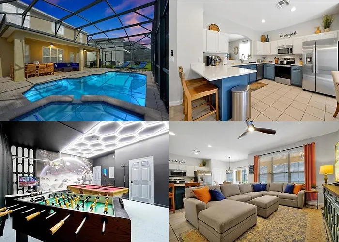 Localizada a uma distância aproximada de 25 minutos a pé de Emerald Island Blvd, a 6 Bedroom Villa Located In Windsor Hills 3 Miles To Disney Free Heated Pool & Spa Game Room With Ps5! Orlando oferece entretenimento ao vivo, casa noturna e karaokê para o lazer dos hóspedes. Com banho de vapor turco, banho turco a vapor e sala de tratamento, a pousada de Orlando está a cerca de 6 km do Campo de Golfe Celebration.